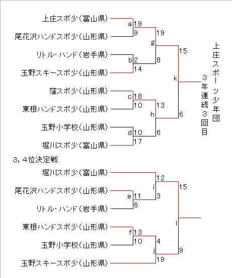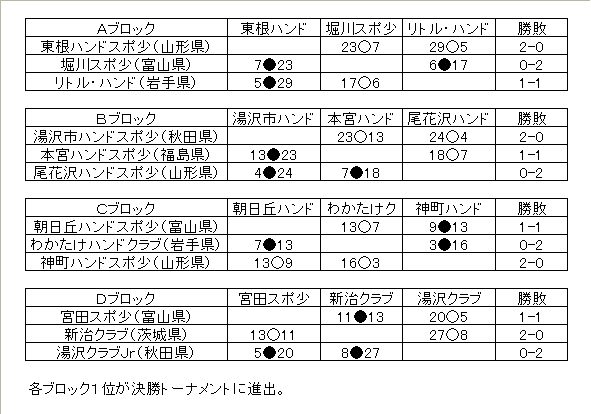 <チェリーカップ第8回 東日本小学生ハンドボール大会 星取り表>