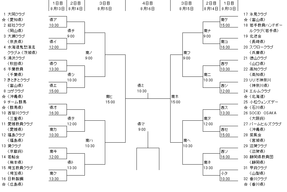 男子組合せ・日程 ☆:シード 会 場 県:高知県民体育館 西:高知西高校体育館 南:高知南高校体育館 小:高知小津高校体育館