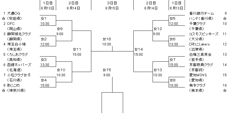 ☆:シード 会 場 県:高知県民体育館 西:高知西高校体育館 女:高知女子大学池キャンパス体育館 小:高知小津高校体育館