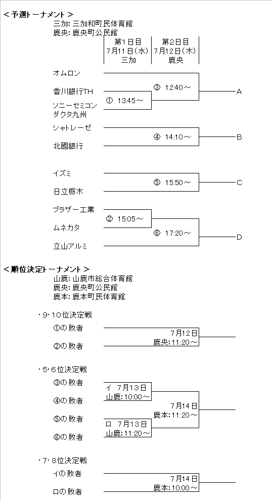** A B C D A ** 未定 7/13 未定 B 未定 ** 未定 7/13 C 7/13 未定 ** 未定 D 未定 7/13 未定 ** . 山鹿市総合体育館