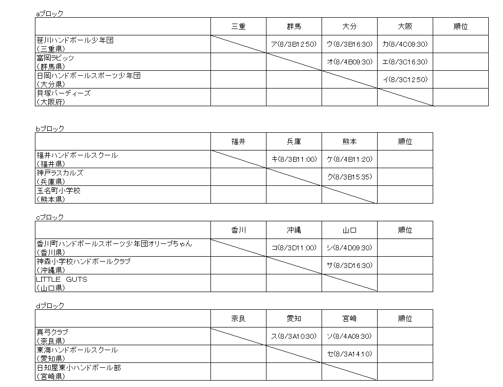 会 場 A:田辺中央体育館(Aコート) B:同志社大学体育館(Bコート) C:同志社大学体育館(Cコート) D:田辺高校体育館(Dコート)