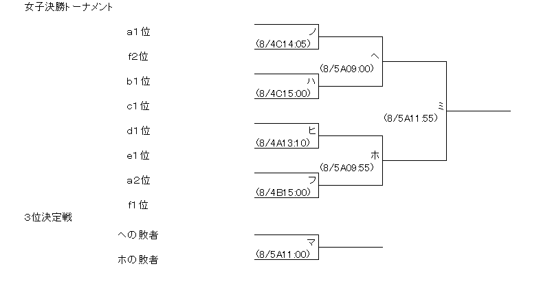 女子組合せ・日程 会 場 A:田辺中央体育館(Aコート) B:同志社大学体育館(Bコート) C:同志社大学体育館(Cコート) D:田辺高校体育館(Dコート)