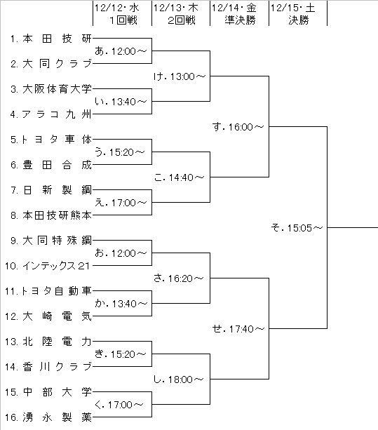 あ〜え:駒沢屋内球技場 お〜く:新宿スポーツセンター け〜せ:駒沢屋内球技場 そ :駒沢体育館