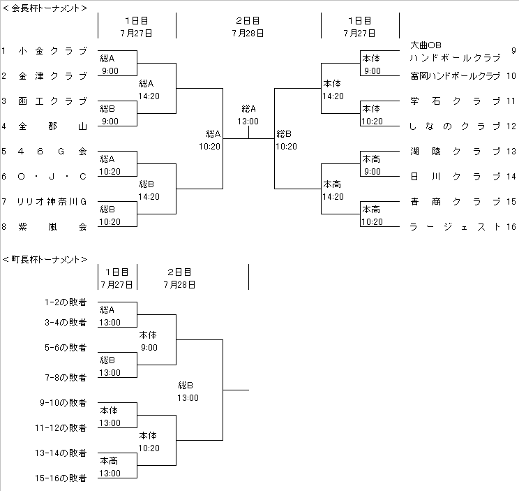 会 場 総合A:本宮町総合体育館 総合B:本宮町総合体育館 本体 :本宮体育館 本高 :本宮高校体育館