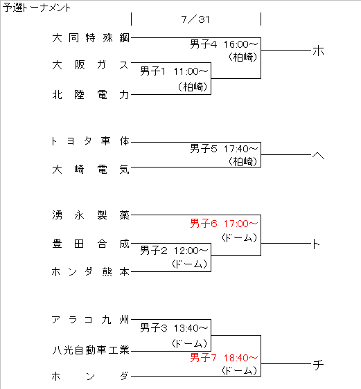 | ヘ | 男子(3) 8/1 16:00〜 | *********** | . | . |