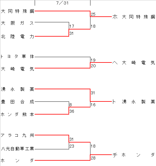 (1)予選トーナメントにて、ホ、ヘ、ト、チに勝ち残ったチームによる