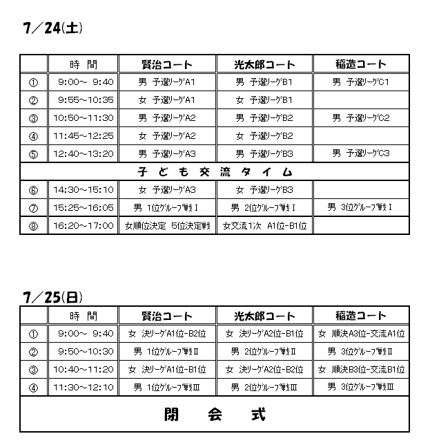 【花巻市総合体育館会場 3コート】…15分ー10分ー15分ゲーム