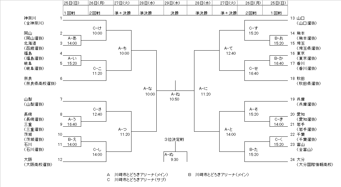 会 場 A:川崎市とどろきアリーナ(メイン) B:川崎市とどろきアリーナ(メイン) C:川崎市とどろきアリーナ(サブ)