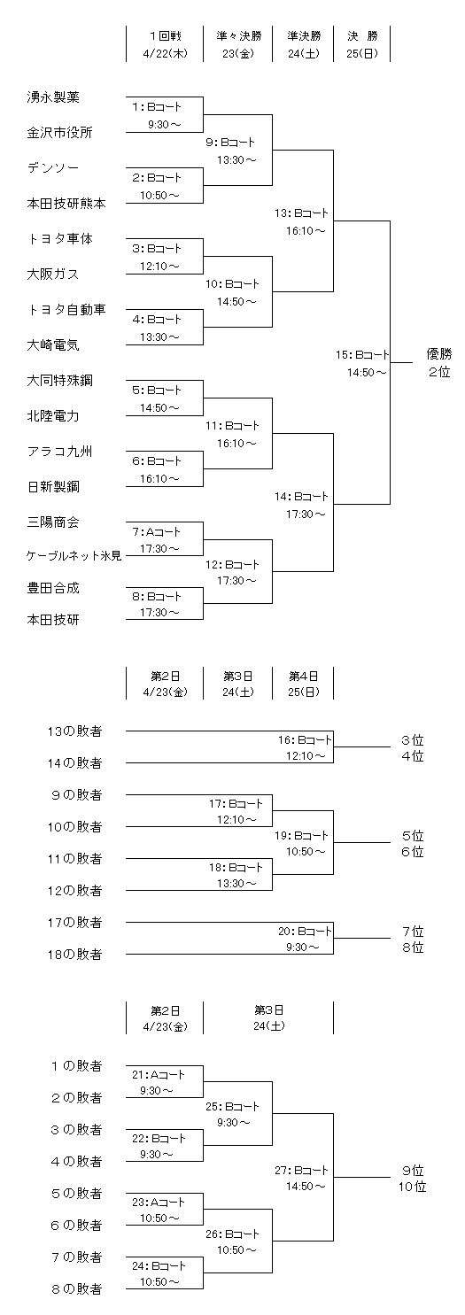 <第40回記念高松宮杯全日本実業団ハンドボール選手権大会 男子組合せ>