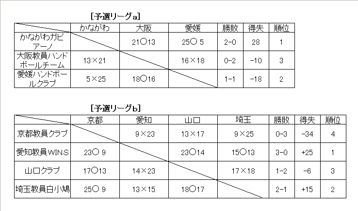 女子予選リーグ星取表