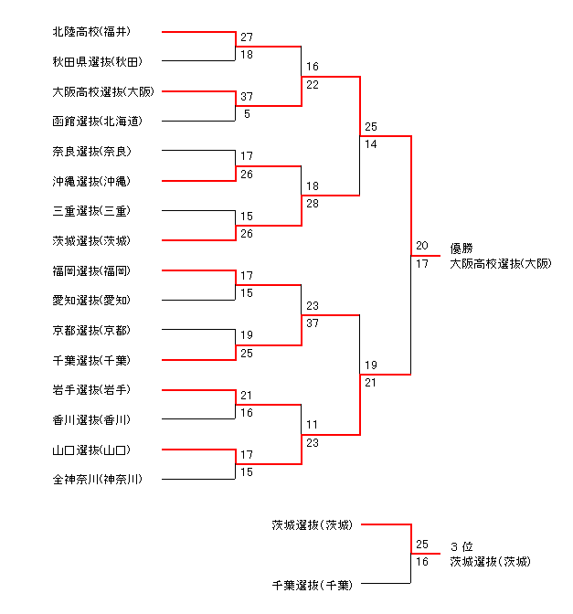 <第52回国民体育大会(なみはや国体) 少年男子トーナメント勝敗表>