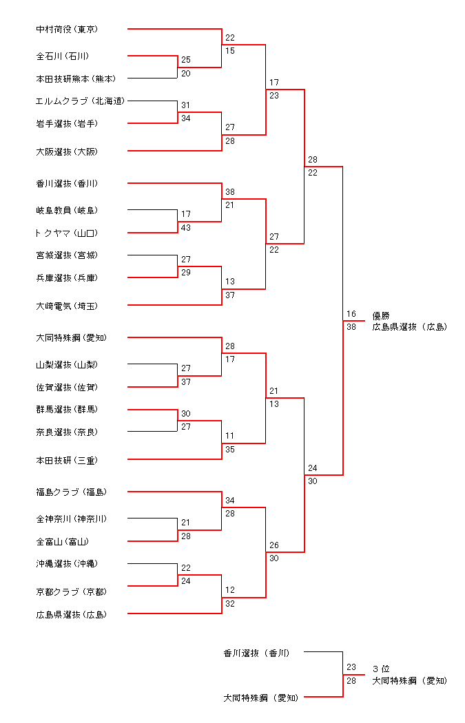 <第52回国民体育大会(なみはや国体) 成年男子トーナメント勝敗表>