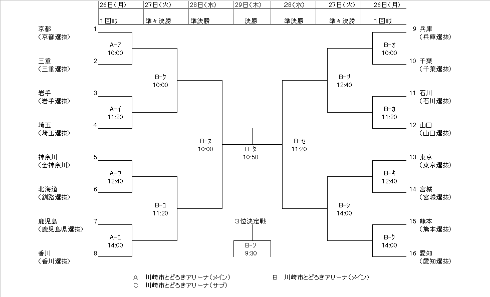 会 場 A:川崎市とどろきアリーナ(メイン) B:川崎市とどろきアリーナ(メイン) C:川崎市とどろきアリーナ(サブ)