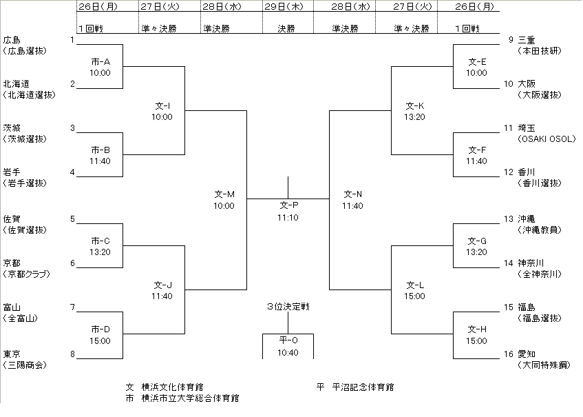 会 場 文:横浜文化体育館 平:平沼記念体育館 市:横浜市立大学総合体育館