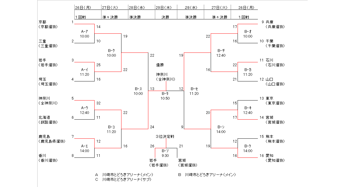 会 場 A:川崎市とどろきアリーナ(メイン) B:川崎市とどろきアリーナ(メイン) C:川崎市とどろきアリーナ(サブ)