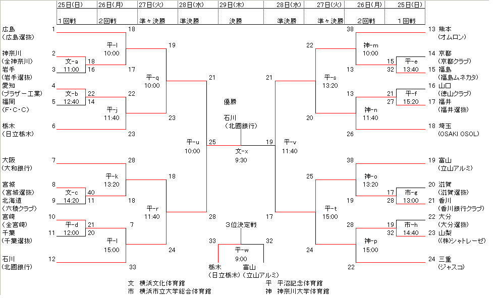 会 場 文:横浜文化体育館 平:平沼記念体育館 市:横浜市立大学総合体育館 神:神奈川大学体育館