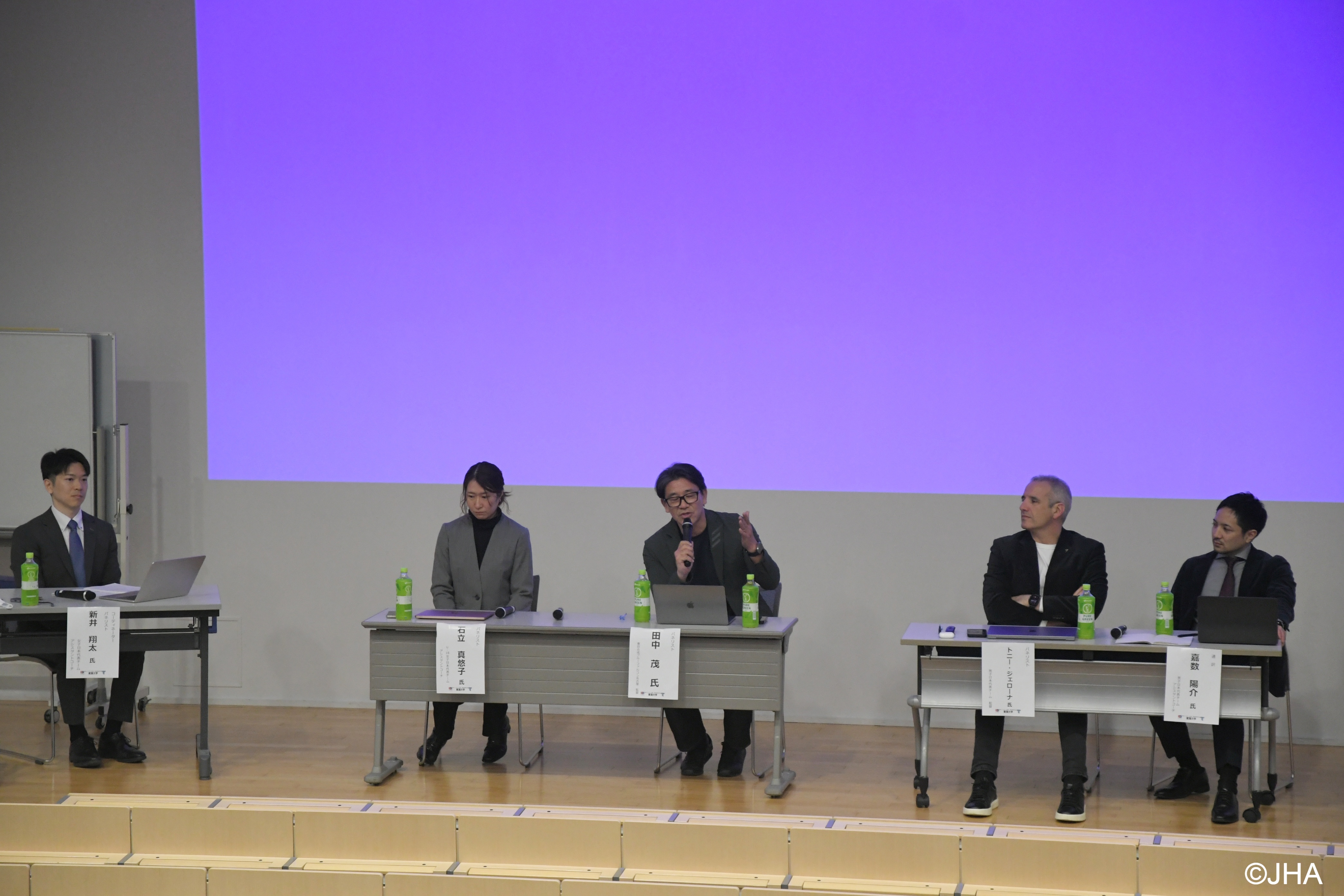 シンポジウムでは、ジェローナ監督、豊田合成ブルーファルコン名古屋監督の田中茂さん(スペイン留学時代、ジェローナ監督が監督を務めたバルセロナのBチームでコーチを務める)、女子日本代表U-18のコーチを務めた石立真悠子さん、女子日本代表「おりひめジャパン」コーチ、女子日本代表U-20監督を兼務している新井翔太さんが、それぞれの立場から考え方、取り組みやその成果、課題を発表しました。