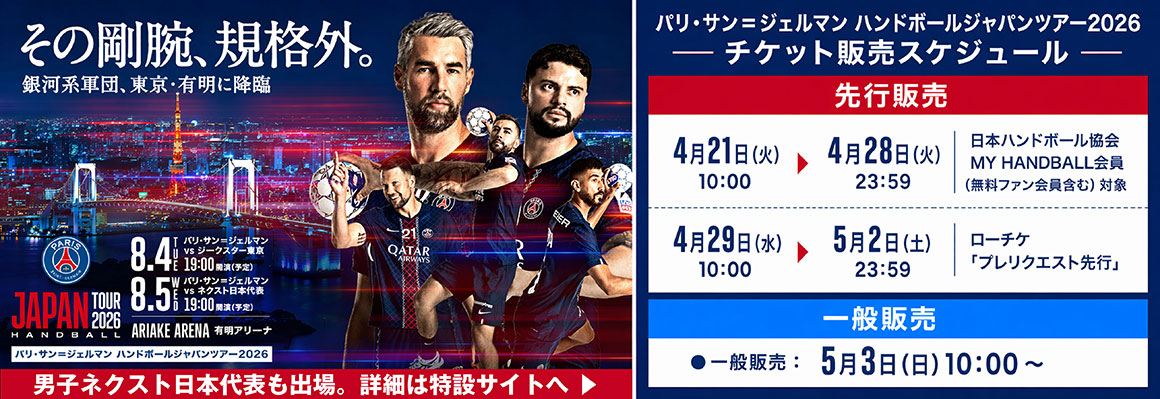 | 8月4日 - 8月5日 | 国際 | パリ・サン=ジェルマン ハンドボールジャパンツアー2026 |