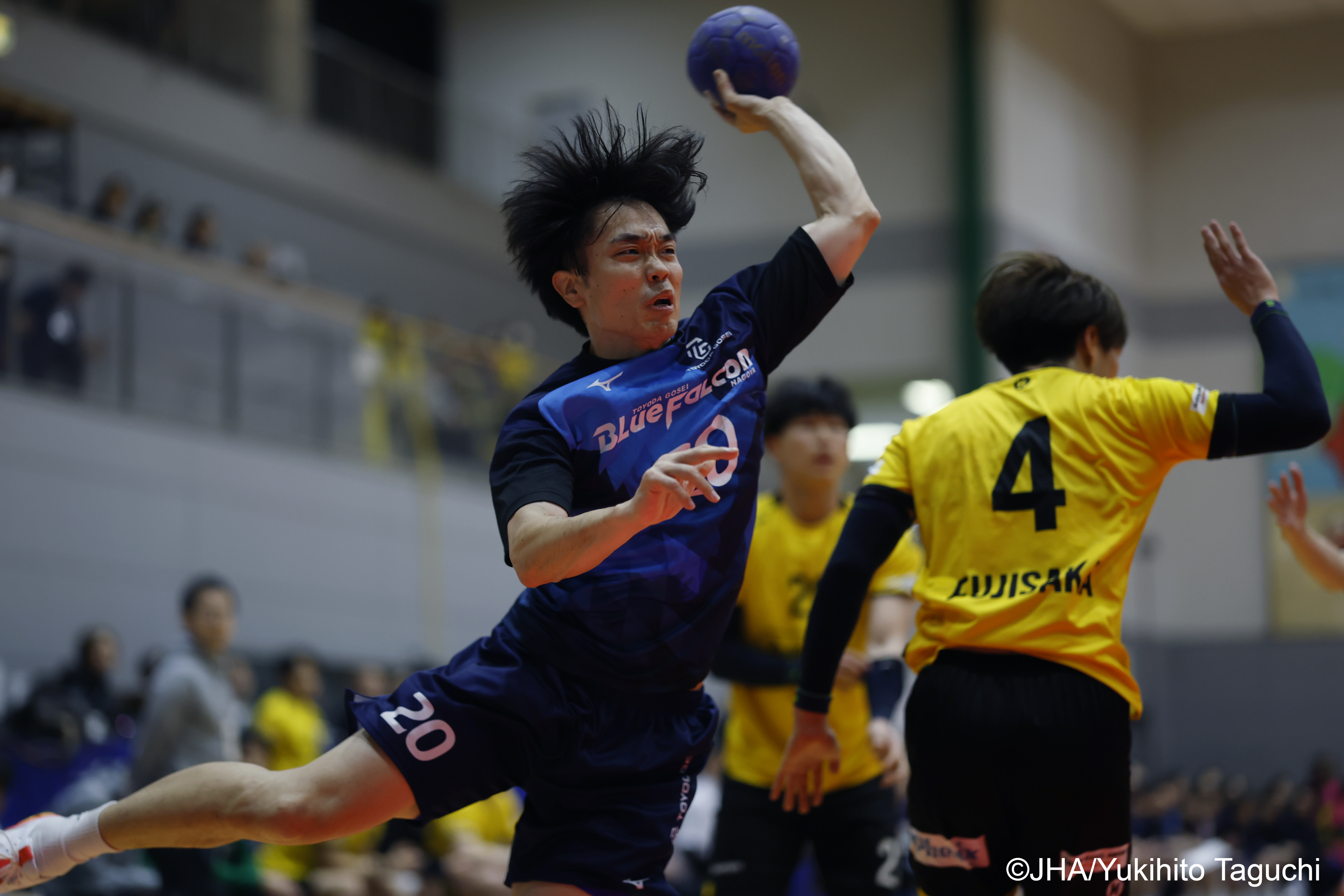 それでも、6連覇に向けて心技充実の豊田合成は、最後まで隙を見せず、出村直嗣(写真上)、朝野暉英らで得点ペースを上げ、終わってみれば44ー25と大きく点差をつけてファイナルステージに名乗りを上げた。