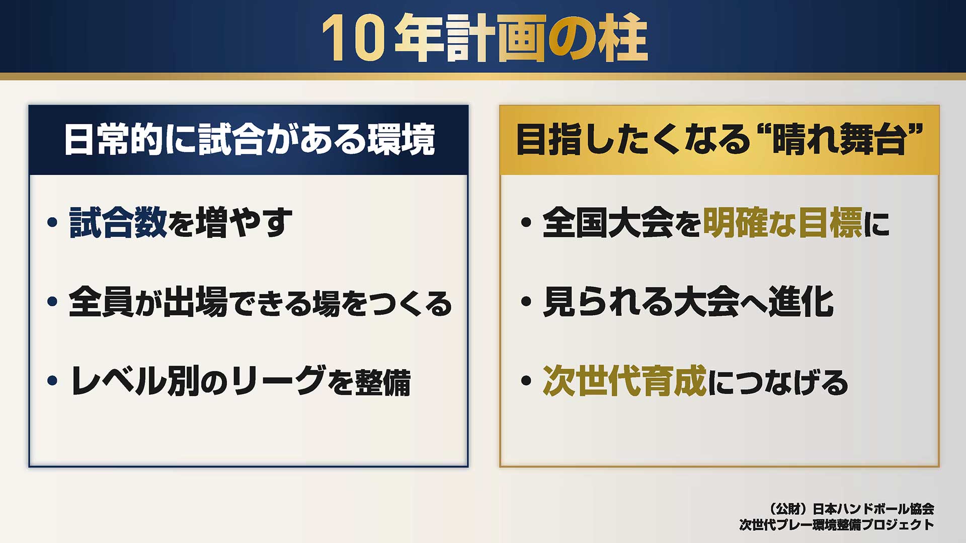 このたび、(全中からの除外が決まった2024年からの)改革のためのプレー環境整備10年計画がまとまりましたので、その内容をお伝えしていきます。