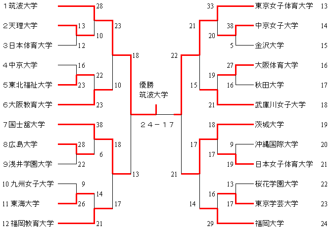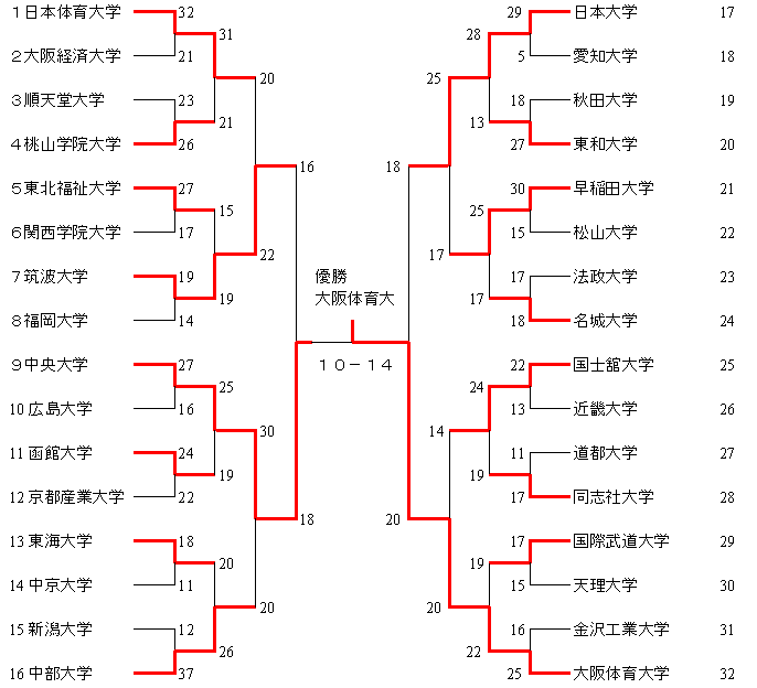 平成12年度全日本学生ハンドボール選手権大会勝ち上がり表