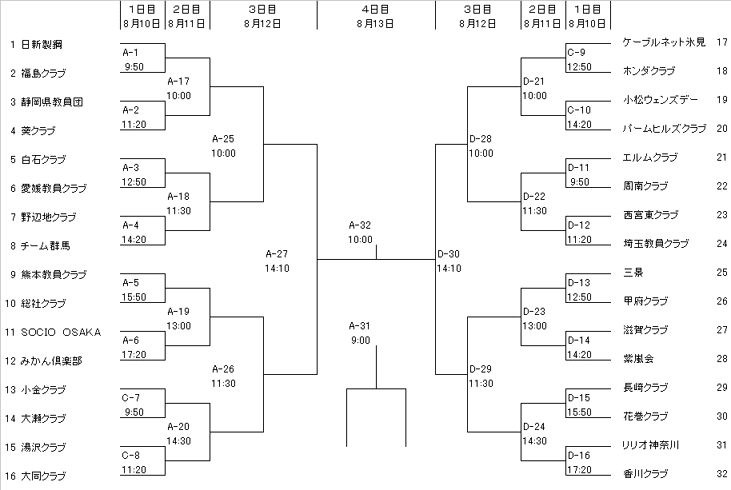 会 場 A:富谷スポーツセンター C:県立宮城大学体育館 D:フラップ大郷21