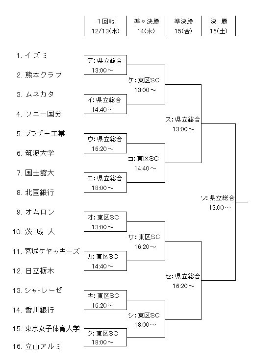 開催期日 平成12年12月13日(水)〜16日(土) 開催場所 広島県立総合体育館,東区スポーツセンター