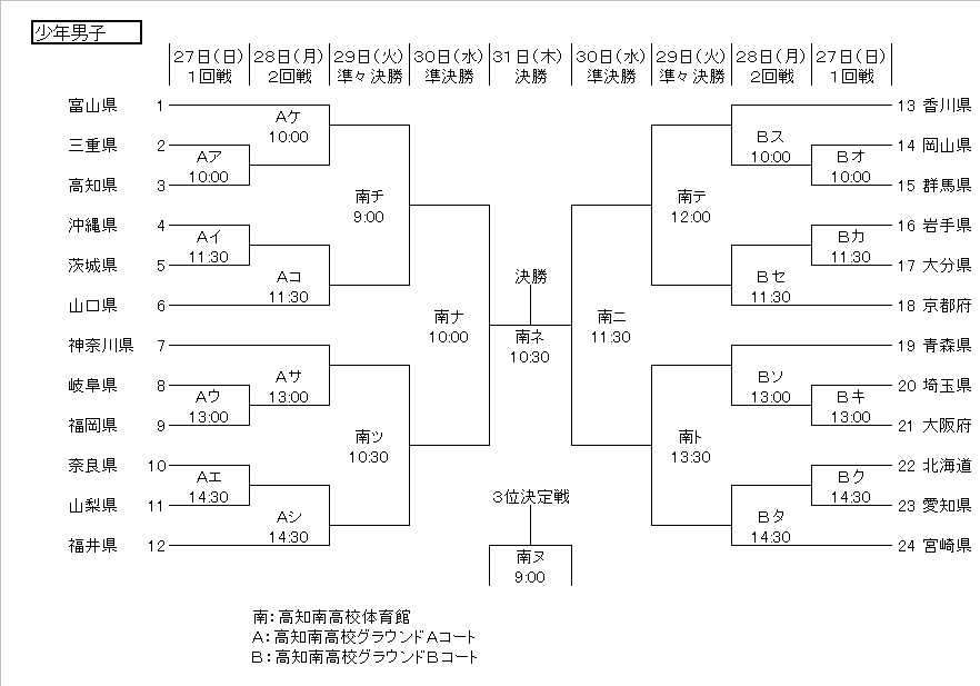 少年男子 組合せトーナメント表
