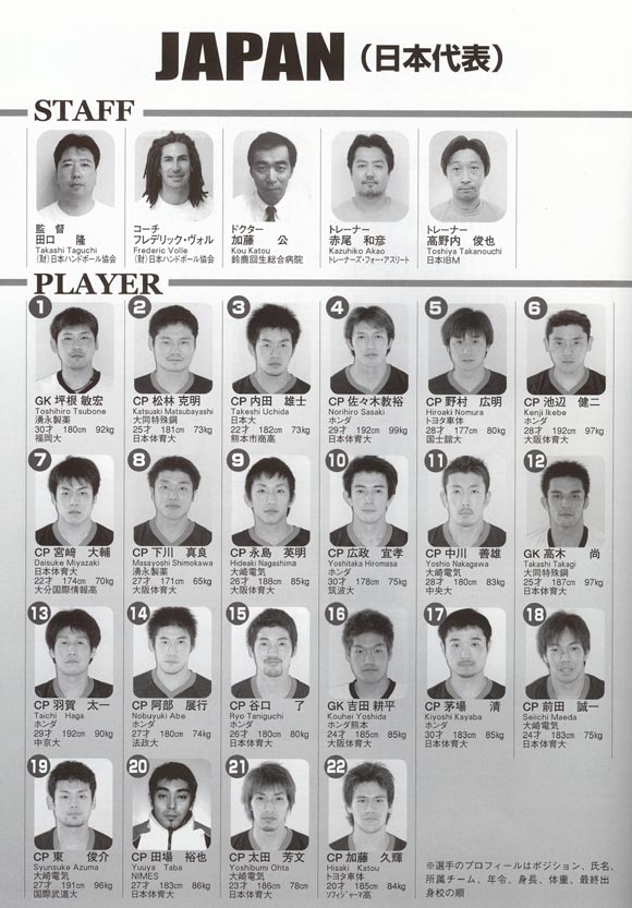 <Japan CUP '03 アテネオリンピックアジア予選壮行試合 選手名簿:日 本>