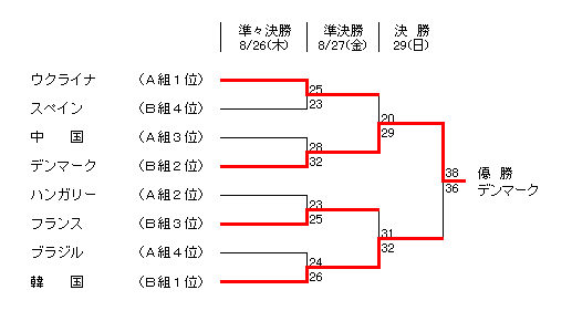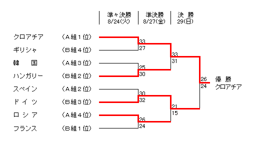 アテネオリンピック・ハンドボール・トーナメント 決勝トーナメント勝敗表