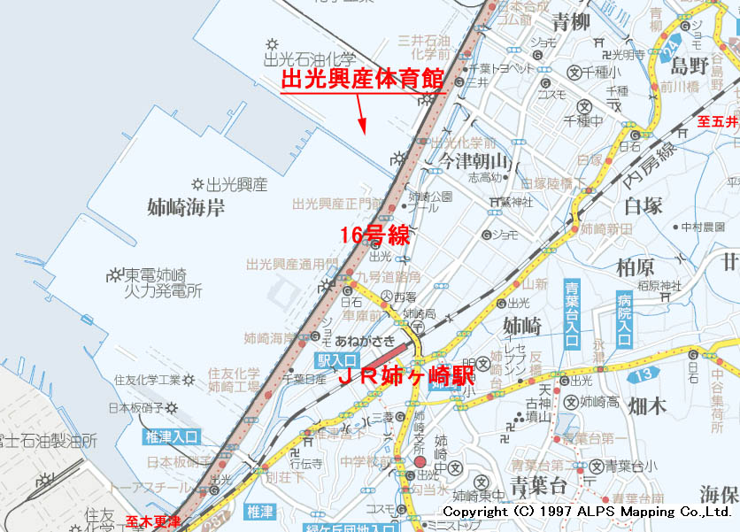 <出光興産体育館> 最寄り駅 JR内房線姉ヶ崎駅下車・タクシー10分 ※出光石油化学正門より通門願います。 所 在 地 千葉県姉崎海岸1番1号 TEL 0436-60-1700