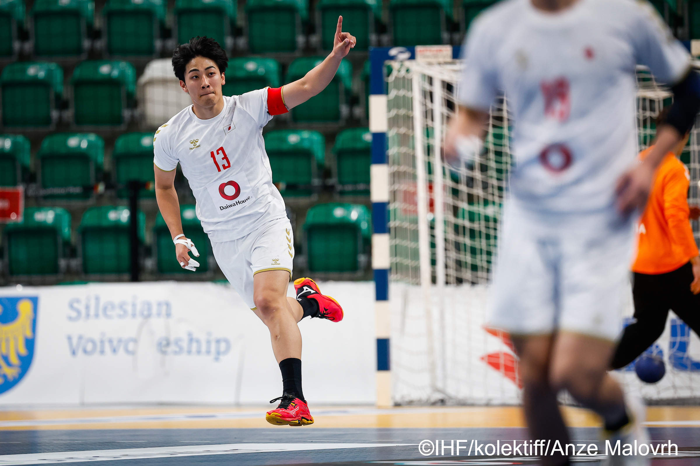 試合はポーランド・ソスノヴィエツで開催され、前半から主導権を握った日本は、攻守両面で安定した戦いを展開。GK薦田 諒(#12/筑波大)の好セーブで流れを掴むと、長谷川 惣唯(#9/中央大)、川田 陽暉(#23/筑波大)の7mスローなどで着実に加点。古川 吉平(#2/国士舘大)のディスタンスシュートも冴え、前半を20–10と大きくリードして折り返しました。