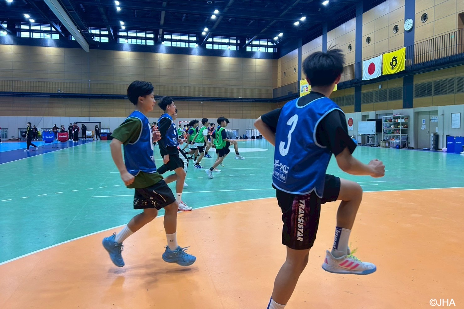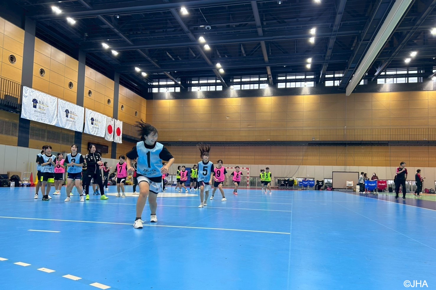 各都道府県協会から推薦された男子選手32人、女子選手25人、および補助指導者20人の参加があり、「身体の操作性の向上(自分のからだをイメージ通りに動かせる)」を目的に、ハンドボールの技術練習だけでなく、さまざまなスポーツの動きを取り入れたトレーニングにもチャレンジしました。